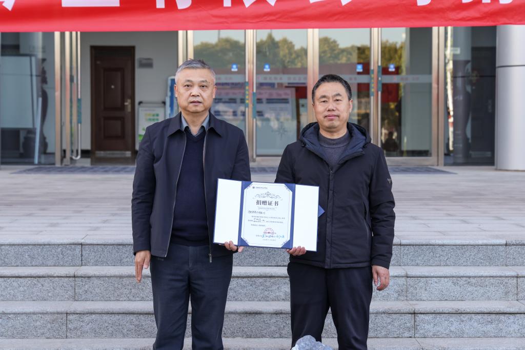 2026年1月15日,河南发恩德矿业有限公司岩矿标本捐赠仪式在学校行政办公楼门前举行。此次捐赠旨在彰显企业社会责任担当,深化校企合作,支持地矿类高素质技术技能人才培养。出席捐赠仪式的有河南发恩德矿业有限公司常务副总裁王秀全、地勘部部长史海松、人力部专员朱志强、河南地矿职业学院党委副书记、校长刘玉宾、地矿工程学院教师代表。仪式由副校长冯敏主持。